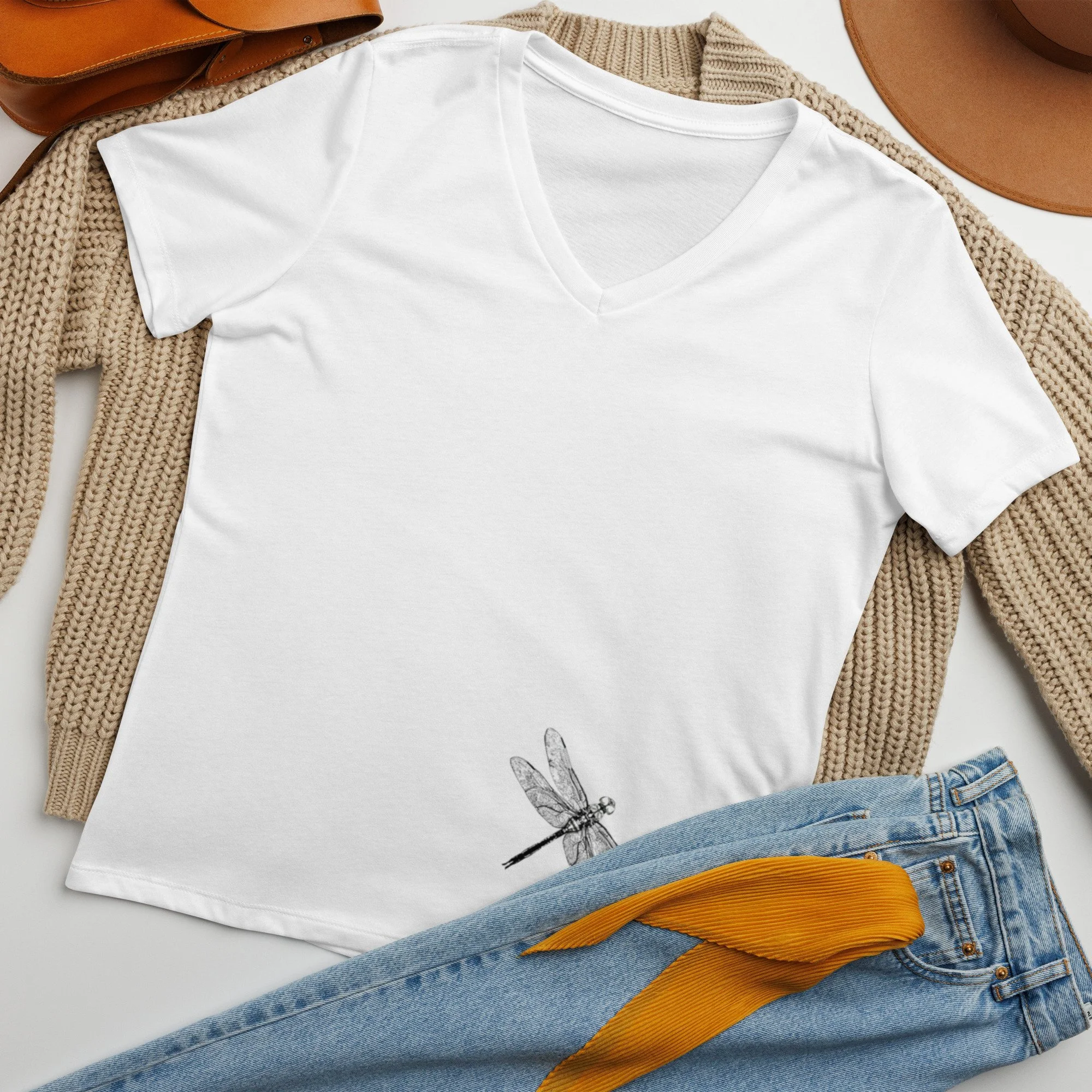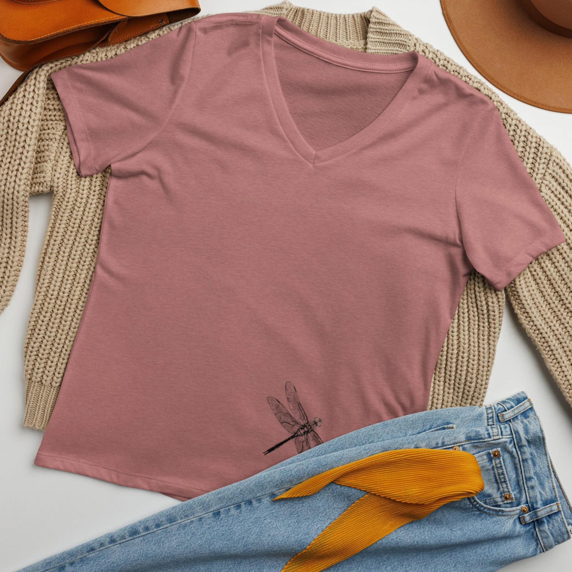 This shirt features the original pen drawing of a dragonfly by Alivia Rubino.